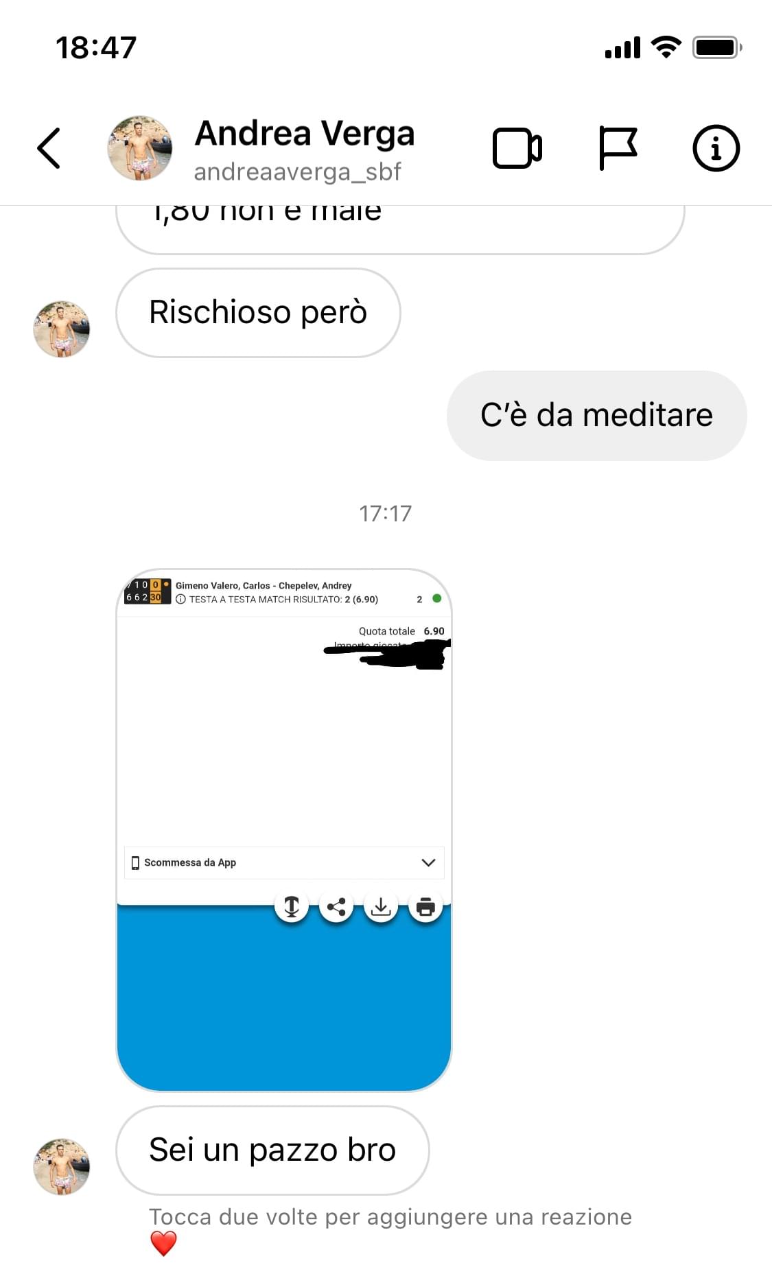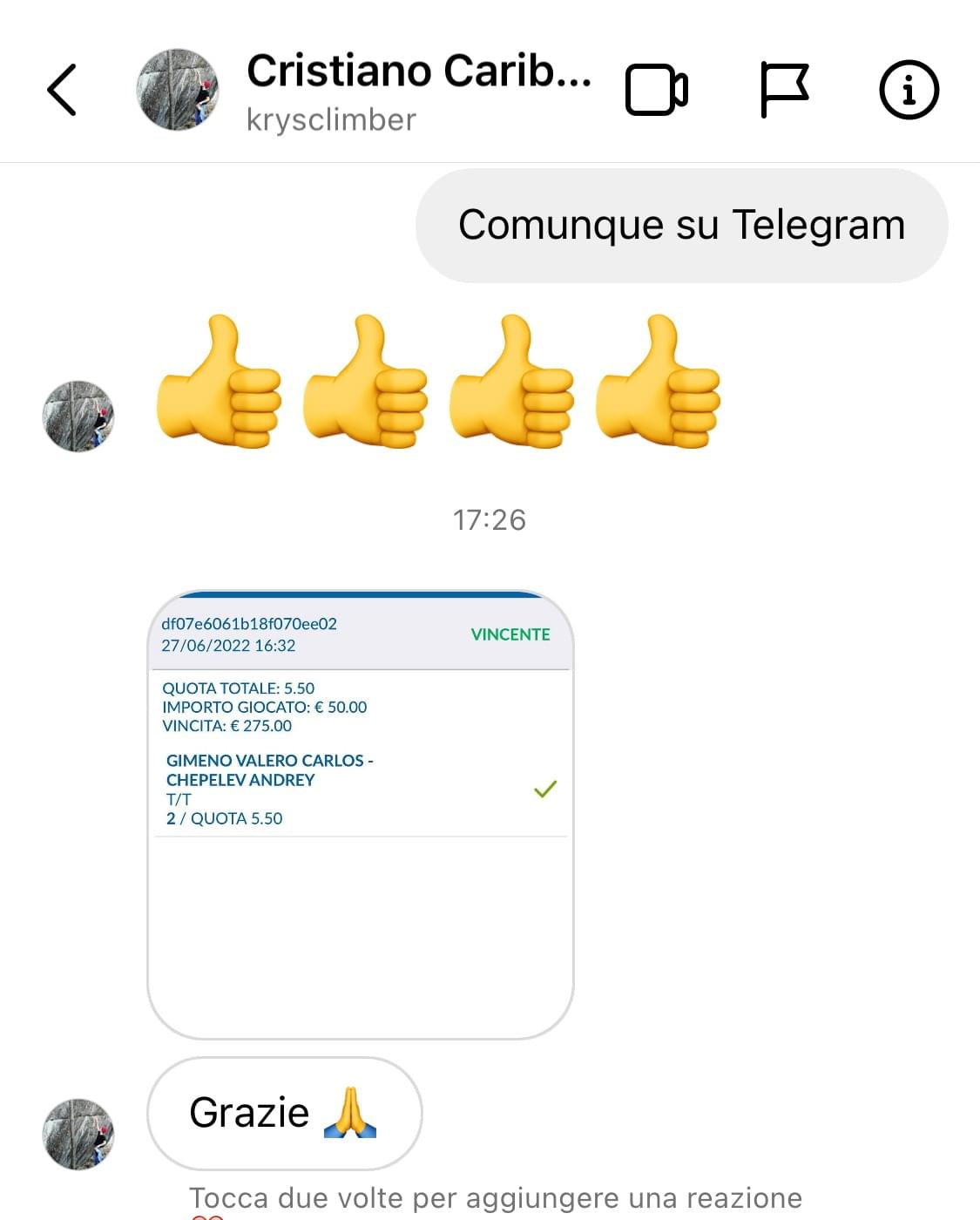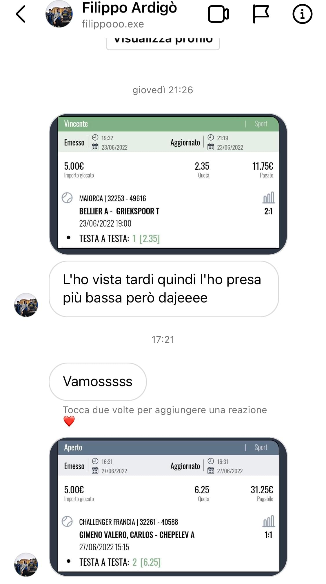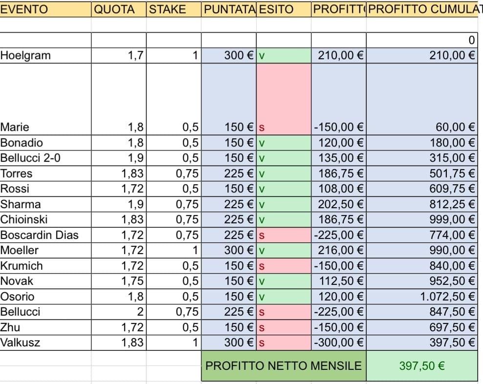 Il mio punto di forza sono le quote alte prese in live, questo perchè grazie alla mia esperienza seguendo le partite riesco spesso ad individuare quote alte di assoluto valore.