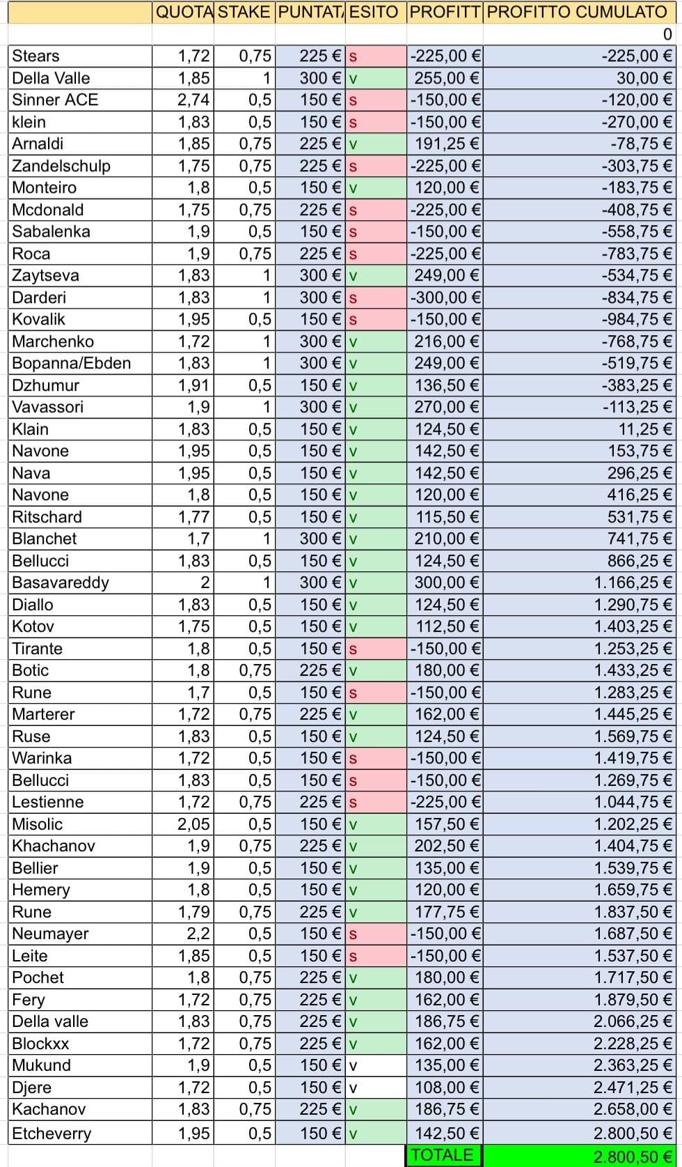 Ho passato anni a scommettere. Non la schedina come passatempo, parlo di analisi e studi approfonditi. Conosco nel dettaglio ogni giocatore o giocatrice, dai più famosi agli emergenti. Mancino o destro, il terreno preferito e i rivali più difficili.